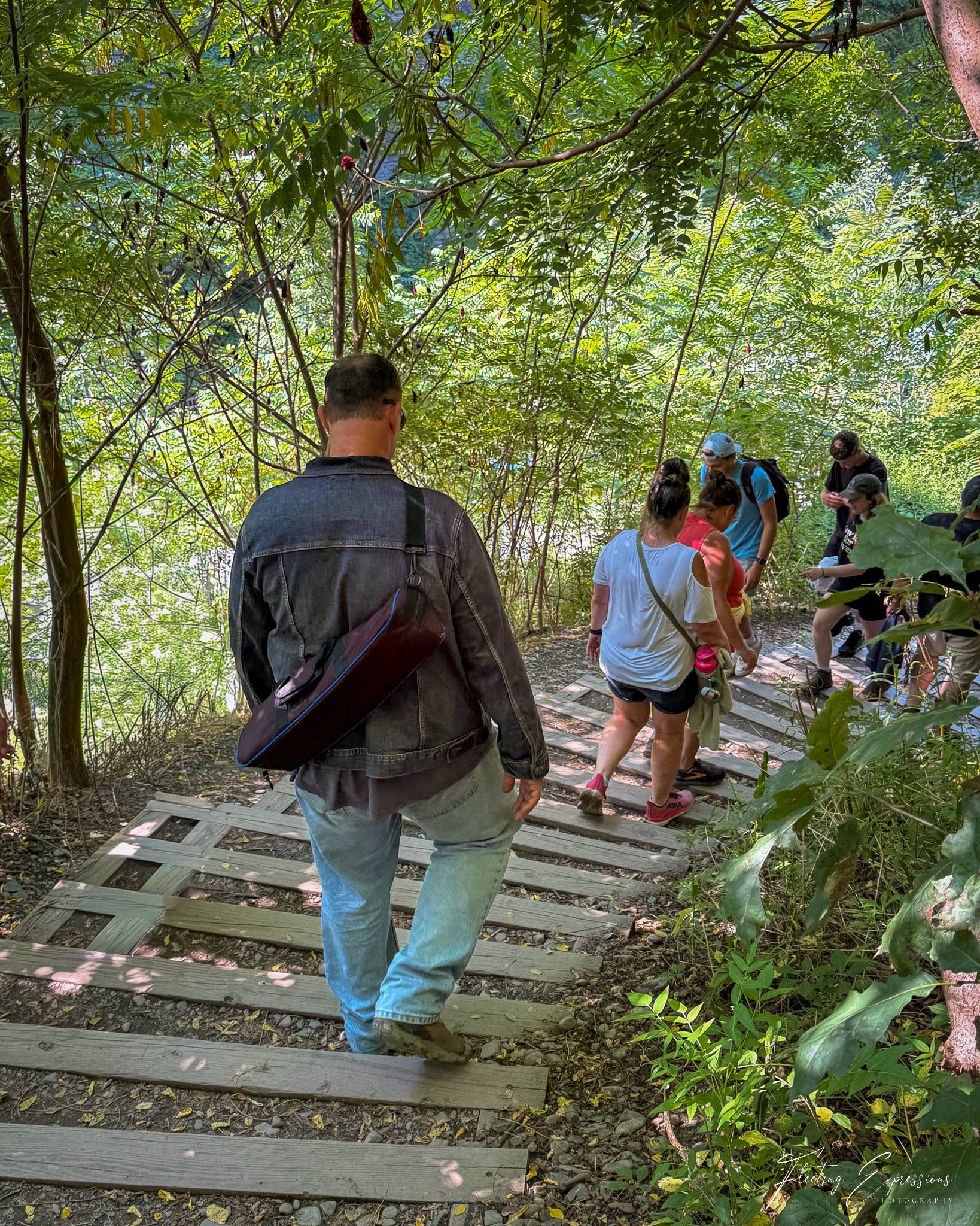 We chose to hike from the upper parking lot, so we made our way down the stone steps at the beginning (you'll see those in the blog post) and then, somehow, also went down the steps at the end of the trail. I don't know how that happened, but we were grateful!