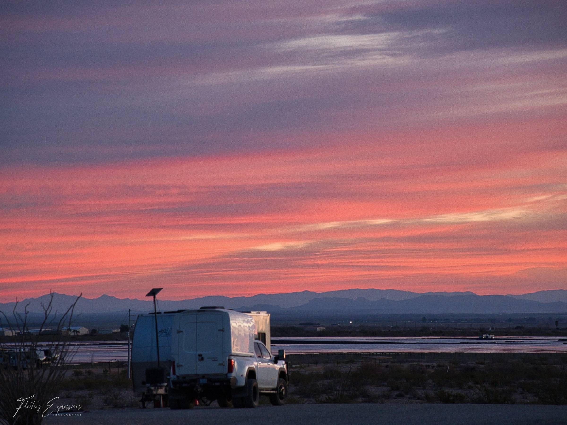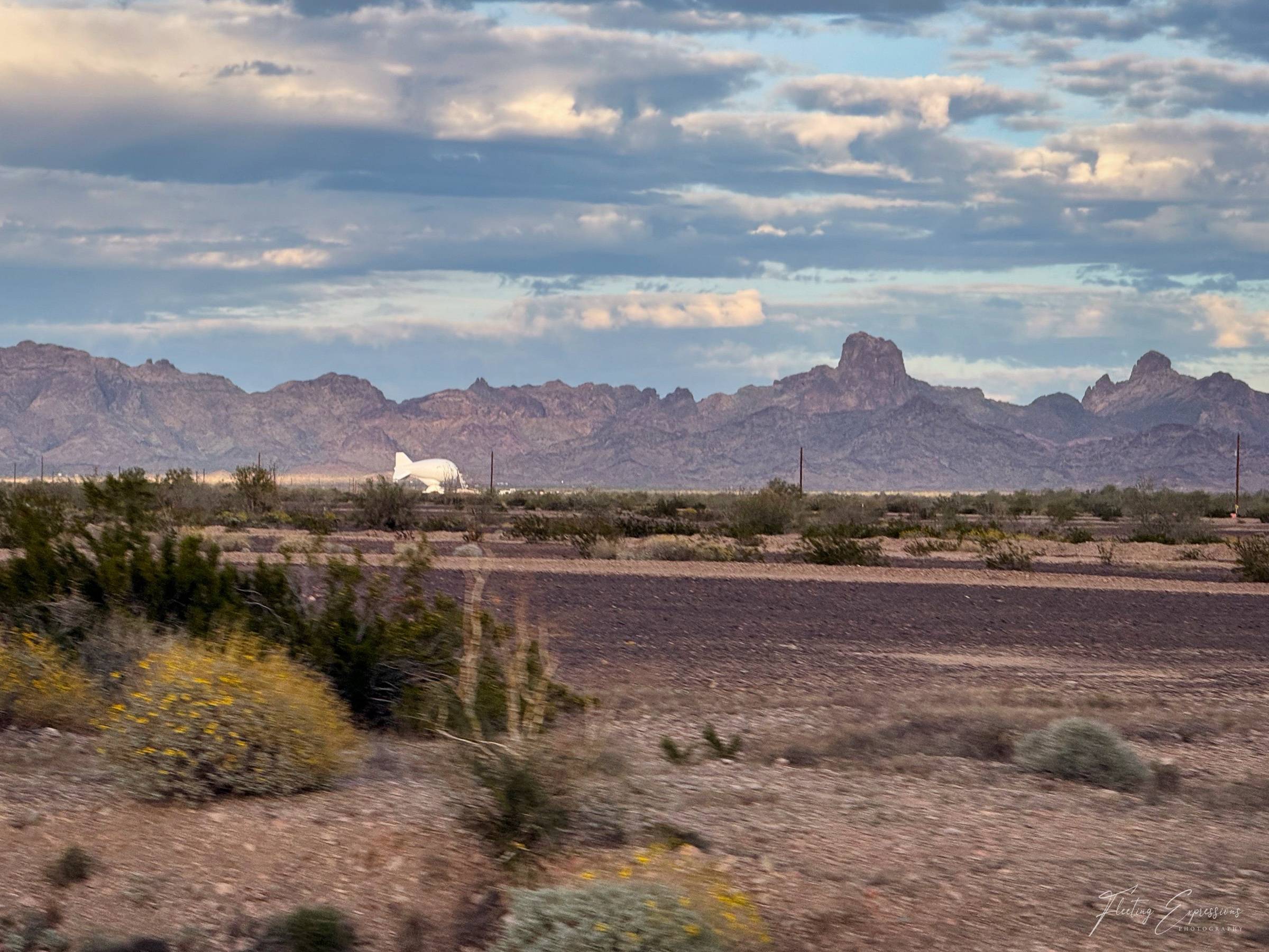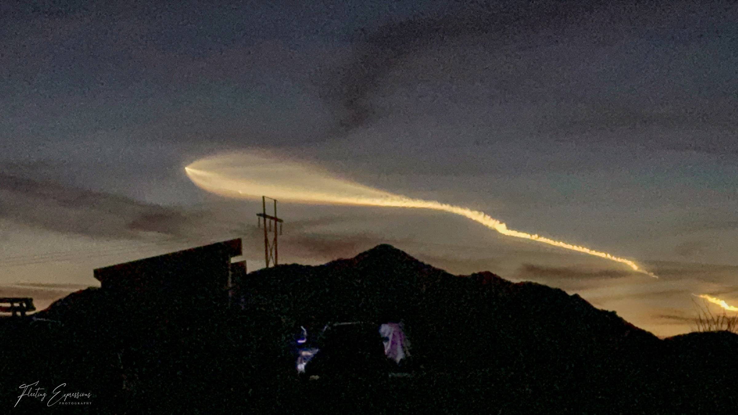 The green beans and bacon sizzle on the grill as we gather at the shed, paper plates in hand and desert dust on our shoes (and pretty much everything else!). Friends from across the country circle up, swapping travel stories while the sun sinks behind the Arizona horizon. Before long, we're sharing the day's adventures and tackling the headlines. No subject is off limits. The conversation can get spirited, but it's always thoughtful. We ask questions. We listen. In a world where real dialogue feels rare, I treasure these evenings when we rediscover it together on the road. The image is pretty grainy, but I didn't care - the moment was too fantastic not to capture. Last year I downloaded an app (Space Launch) that tracks upcoming launches. Now that we're near Vandenberg Space Force Base in California, we've been lucky enough to catch several Starlink launches. The ones at sunset and sunrise create a fascinating "jellyfish" effect. High above the earth, where the air is thin, the exhaust spreads wide and with the ground below already dark, the rocket is in direct sunlight. It's an incredible sight. I grabbed this shot with my cell phone but maybe next time I'll have the OM-1 Mark II ready. Wish me luck! Pink and coral streak the morning sky, silhouetting the mountains beyond our friend Bill's campsite. This is the moment before the day wakes up and everything begins. There's a quiet here that is hard to put into words. I find I can breathe deeper when I am looking out at the vibrant, layered light. Some mornings remind me just how lucky I am — watching the world wake up with a warm cup of coffee in my hand and a stunning view before me. There's something poetic about riding a motorcycle through a military proving ground, a place built for testing and force, and finding stillness instead. Along with a surveillance blimp. The TARS (Tethered Aerostat Radar System), 208 feet long, scans for low-flying aircraft along the border. It's an unexpected sight against the rugged beauty of the desert, a reminder that even here, strength and stillness share the same sky. As this sunrise reminded me, every place we pass through holds something unexpected: connection, contrast, wonder, or quiet. That's the gift of life on the road. The sky changes, the landscape shifts, but there is always something worth pausing for. I hope you find a moment this weekend to look up, breathe deep, and notice the light wherever you are.
