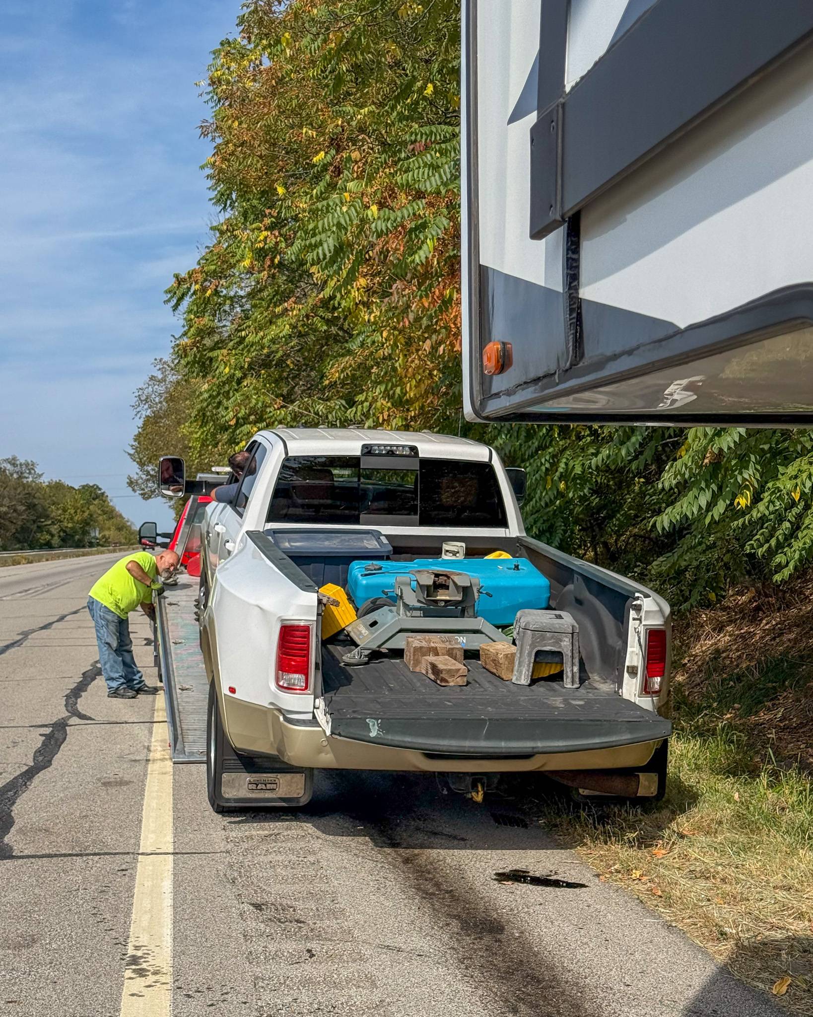 I'll wrap this up with with gratitude, because the tow truck driver's friend had driven by and called to offer to tow our trailer to the campground and arrangements were quickly made to get that done.
