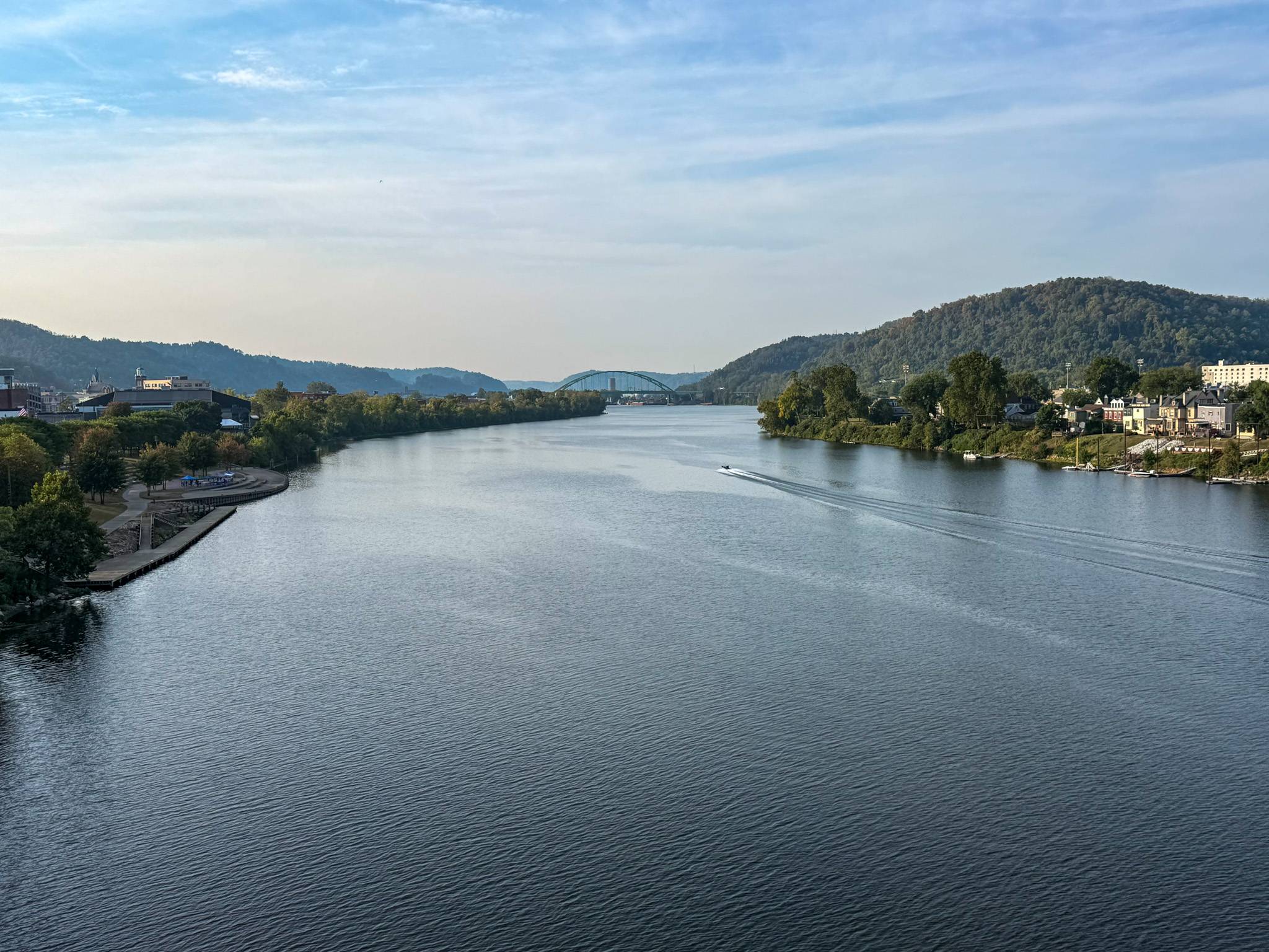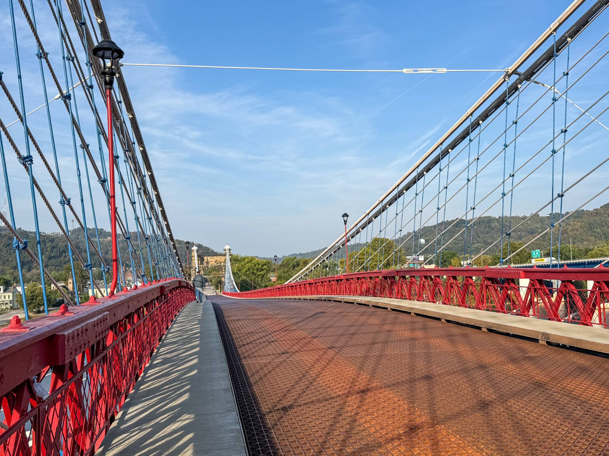 After a great (and quiet!) night of sleep, we unloaded the bike and rode off for a delicious breakfast and a tour of Wheeling, WV. The town was an interesting mix of old and new, with a fun downtown area and a cool suspension bridge spanning the Ohio River!